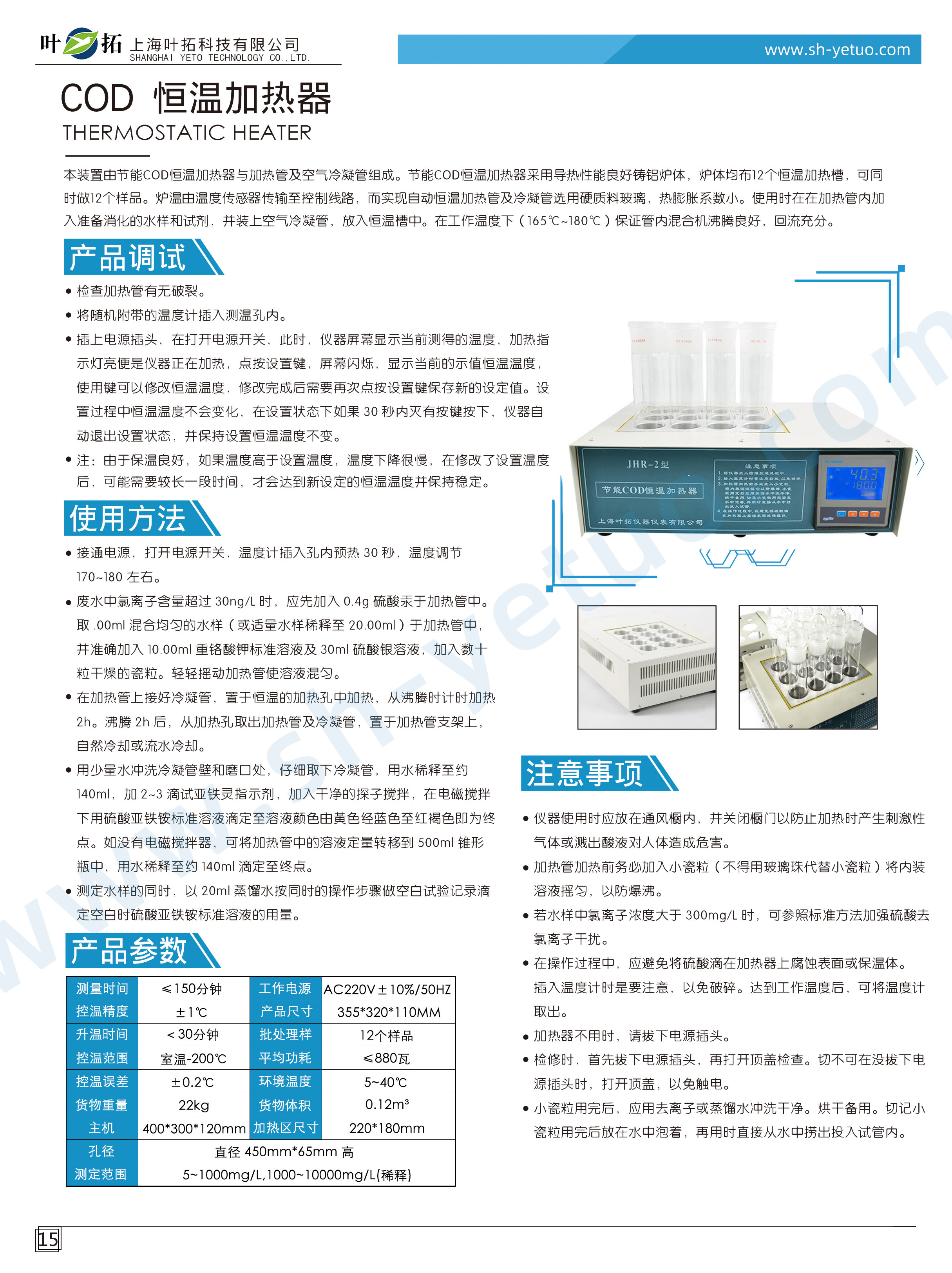 葉拓 JHR-2 COD恒溫加熱器詳細參數