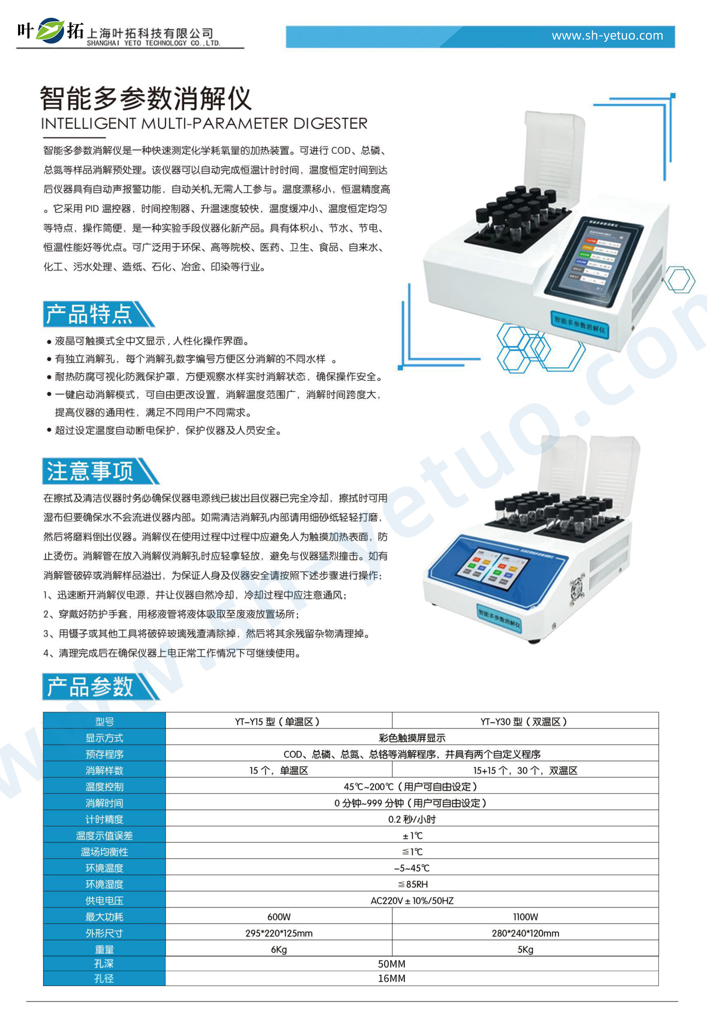 葉拓 YT-Y15 智能消解儀詳細參數
