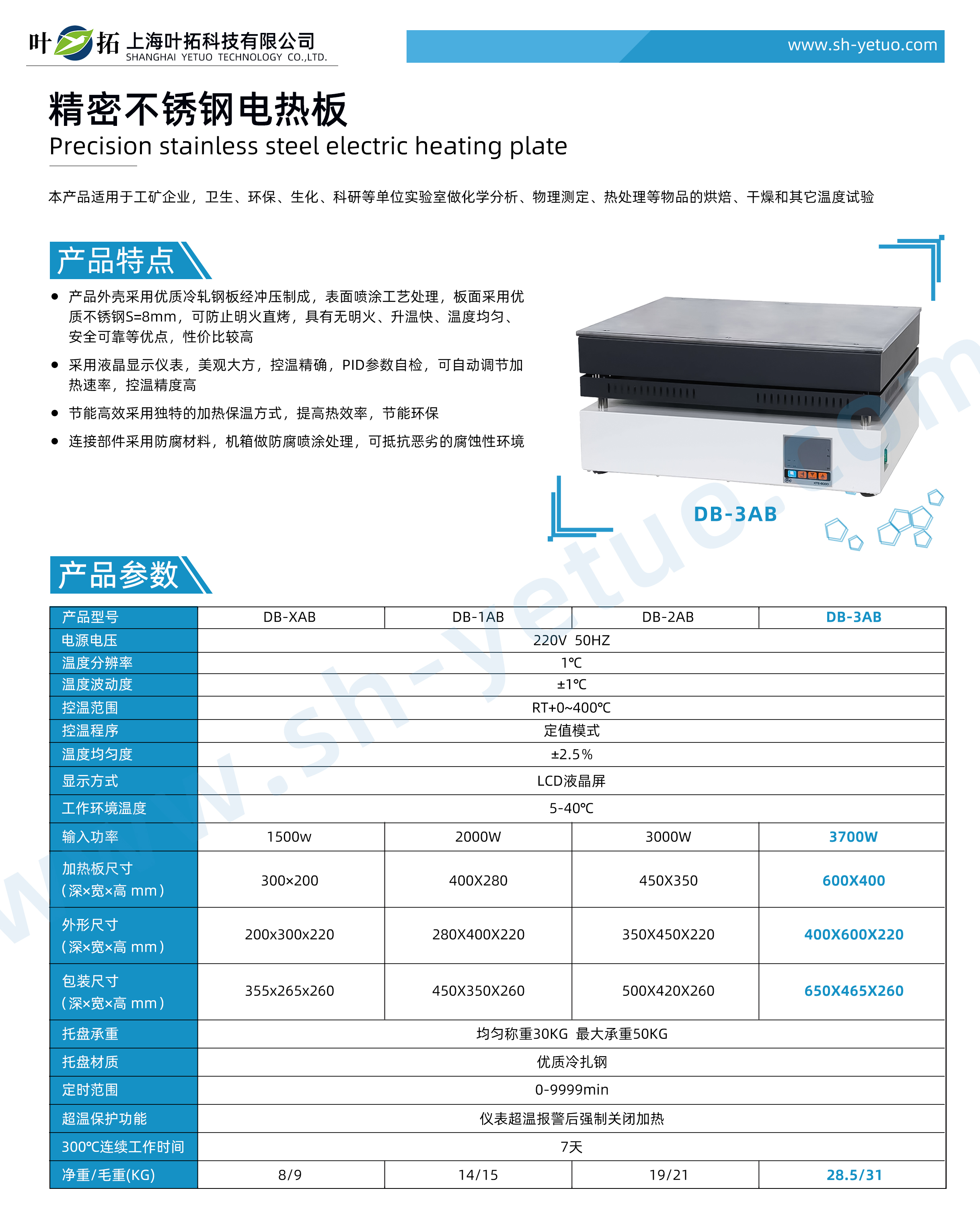 葉拓 DB-3AB 精密不銹鋼電熱板詳細(xì)參數(shù)